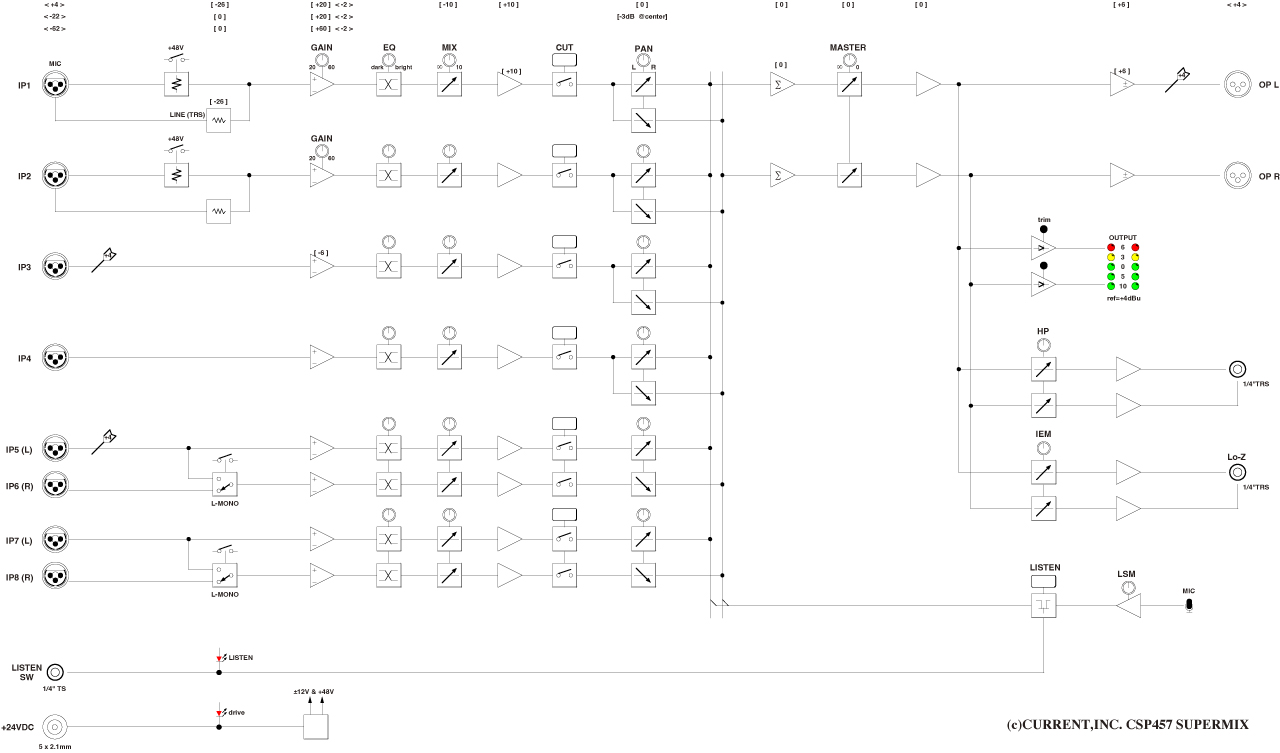 CSP457はHP、IEMでのモニターのために生まれた4モノ+2ステレオ入力のミキサーです。各chに実装されたEQで素早いサウンド調整が可能です。ライブ、音楽制作、収録などのシーンでこれまでにない最高のパフォーマンスを提供します。