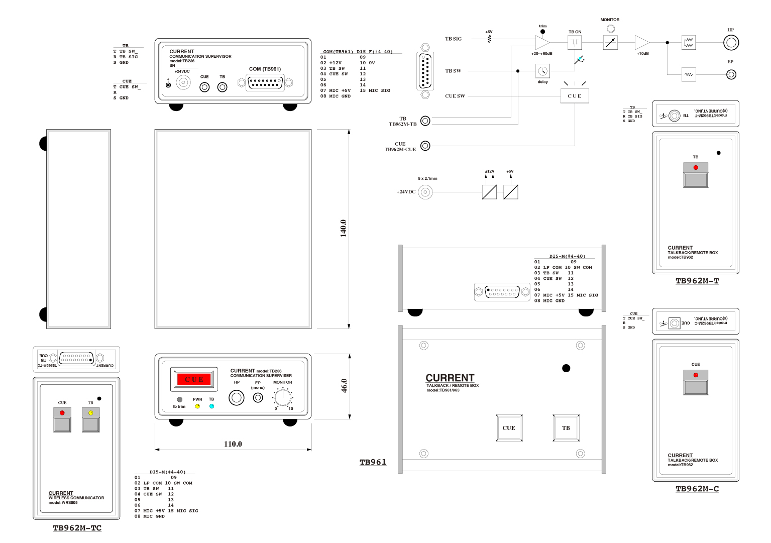 •FN: TB, CUE SWITCH, TB MIC, DB15-M DIM: 146Wx47Hx104D 500g